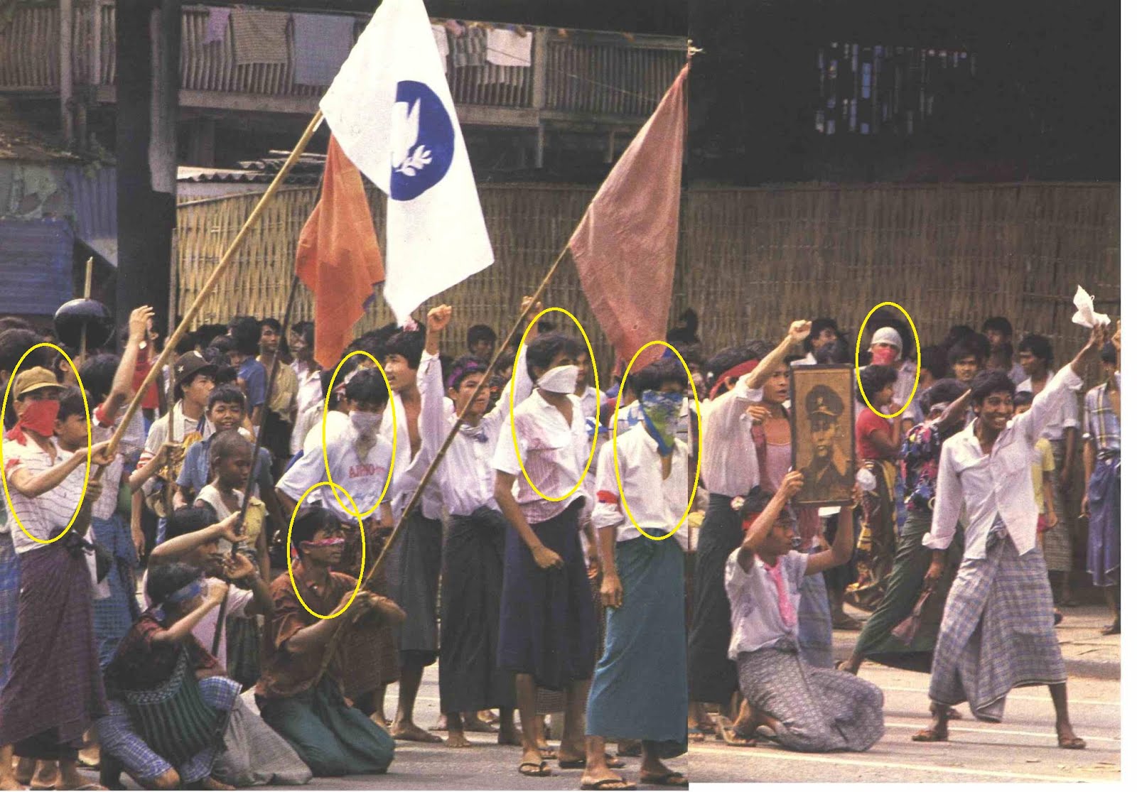 ၁၉၈၈ ျသဂုတ္ (၈)၇က္မွာစတင္ခဲ့တဲ့ (၈၈)ေက်ာင္းသားဆူပူမွဳ ေနာက္ပိုင္းမွာ ေ၇ာင္ေတာ္ျပန္နဲ့ေ၇ာလႊတ္တဲ့လူေတြ အလံုးအ၇င္းနဲ့ပါဝင္လာျကပီး (၈၈)ျပည္လံုးကြ်တ္ဆူပူေသာင္းက်န္းမွဳ စစ္စစ္ ျဖစ္သြားပါေတာ့တယ္ ဆန္ဒျပလူအုပ္ျကီးေတြထဲက သတ္ခ်င္ျဖတ္ခ်င္စိတ္ေတြဖံုးလြမ္းပီး လူစိတ္ေပ်ာက္ေနသူေတြက သူတို့မသင္ကာဘူးလို့ထင္တဲ့ လူအုပ္ထဲကလူတခို့်ကို ေ၇ြးပီးဆဲြထုတ္ ၇ိုက္နွက္စစ္ေဆးပီး သူတို့၇ဲ့ ျခိမ္းေျခာက္ေမးခြန္းေတြ တစ္ဖက္သတ္စြပ္စဲြခ်က္ေတြကို ေျကာက္လို့ မေျဖတတ္လို့ ေသြးဆာေနသူေတြ ေက်နပ္ေအာင္မေျဖနိုင္တာတစ္ခုထဲနဲ့ အေျခအျမစ္မ၇ိွ ေထာက္လွမ္းေ၇းလို့စြပ္စဲြပီး ျမို့လယ္ေခါင္မွာ မင္းမဲ့စ၇ိုက္နဲ့ေခါင္းျဖတ္သတ္ျကတာေတြျဖစ္ခဲ့၇တယ္ နိဳင္ငံေတာ္ပိုင္ကုန္ေလွာင္၇ံုေတြ စက္၇ံုေတြ အလုပ္၇ံုေတြကိုေဖါက္ထြင္းလုယက္ျကတာ မီး၇ိႈ႕ဖ်က္ဆီးျကတာေတြျဖစ္ခဲ့၇တယ္