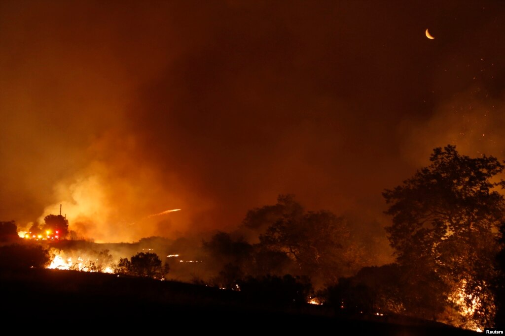 အပူပိုင္းကႏာၱရဘ က္အျခမ္းကေန ကမ္း႐ုိးတန္းဘက္ ကို တုိက္တဲ့ ေလျပင္းေၾကာင့္ ကယ္လီဖုိးနီးယား ျပည္နယ္ေတာင္ပို င္းက ေတာမီးဟာ ပိုၿပီးေတာ့ အားေကာင္းလာခဲ့တ ာ ျဖစ္ပါတယ္။ မီးကို တနလၤာေန႔ေလာက္မွ ာ လုံး၀ၿငိမ္းသတ္ႏ ုိင္ဖို႔ ေမွ်ာ္လင့္ထားတယ ္လို႔ မီးသတ္အာဏာပိုင္ ေတြက ေျပာပါတယ္။ ေႏြရာသီ အပူခ်ိန္ ျမင့္တက္တာနဲ႔ မိုးေခါင္တာေတြက မီးေလာင္ကၽြမ္းမ ႈေတြ ပိုျဖစ္လာႏုိင္တ ယ္လို႔ မိုးေလ၀သပညာရွင္ ေတြက ခန္႔မွန္းေနၾကပါ တယ္။